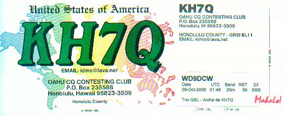 20061029 01:48 KH7Q " 5931 14.277 " " : OAHU CQ CONTESTING CLUB, HONOLULU HI._S,R